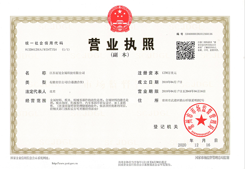 江蘇富冠金屬科技有限公司(以下簡(jiǎn)稱:“公司”)成立于2018年4月,隸屬于鑫昌泰集團(tuán),是常州市經(jīng)開區(qū)招商引資的重點(diǎn)外資企業(yè),注冊(cè)資本1230萬(wàn)美元,座落于常州市經(jīng)開區(qū)橫山橋智能裝備產(chǎn)業(yè)園,占地面積22762.8平方米,員工總數(shù)100人。公司主要經(jīng)營(yíng):金屬材料、模具、機(jī)械零部件的改性處理;金屬材料的激光處理;模具鋼材、機(jī)械零件、汽車零部件研發(fā)設(shè)計(jì)、加工及銷售。并具有真空淬火、普通淬火、調(diào)質(zhì)、去應(yīng)力回......
